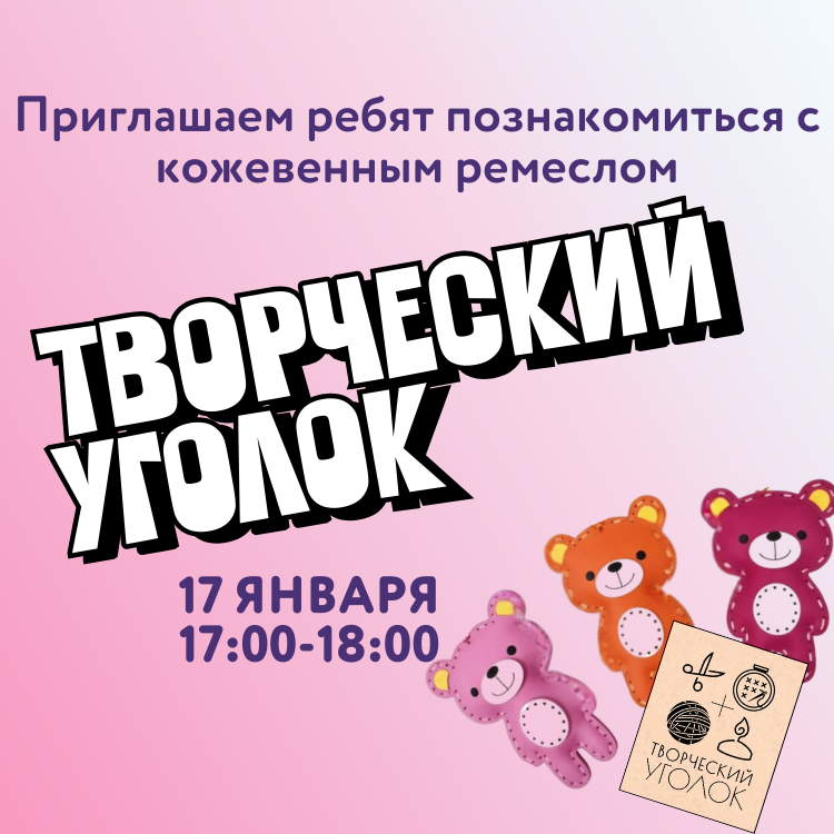 Приглашаем ребят от 8 лет познакомиться с кожевенным ремеслом и сделать свою первую поделку вместе с мастерской "Творческий уголок" - мишутку.